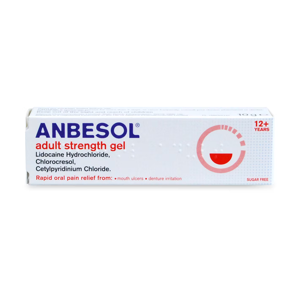 Anbesol Adult Gel is a fast-acting, direct-application treatment for mouth ulcers, sore gums, and toothache. It contains a blend of lidocaine hydrochloride (a local anesthetic) to numb pain and antiseptic ingredients to prevent infection.