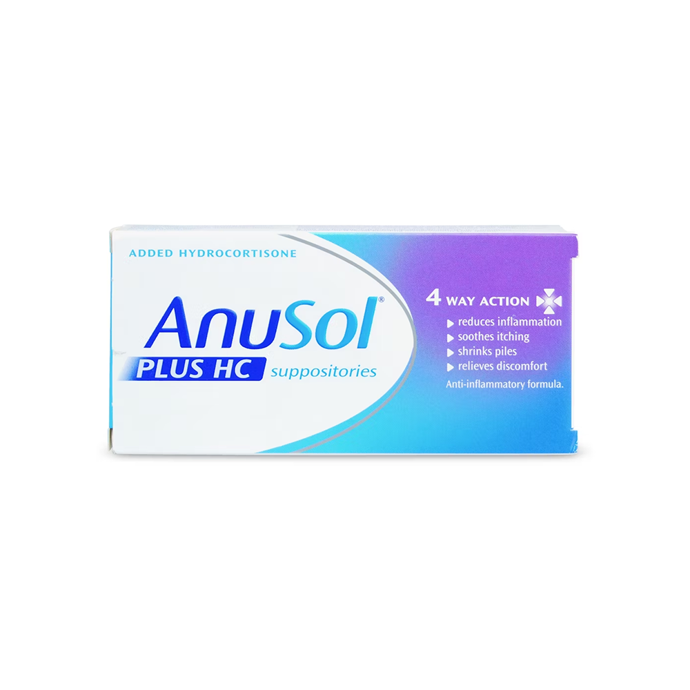 Anusol Plus HC Suppositories are specially formulated for the internal treatment of hemorrhoids (piles). These easy-to-use suppositories combine hydrocortisone, a mild steroid that reduces inflammation and irritation, with other active ingredients that help soothe soreness, shrink swelling, and promote healing.