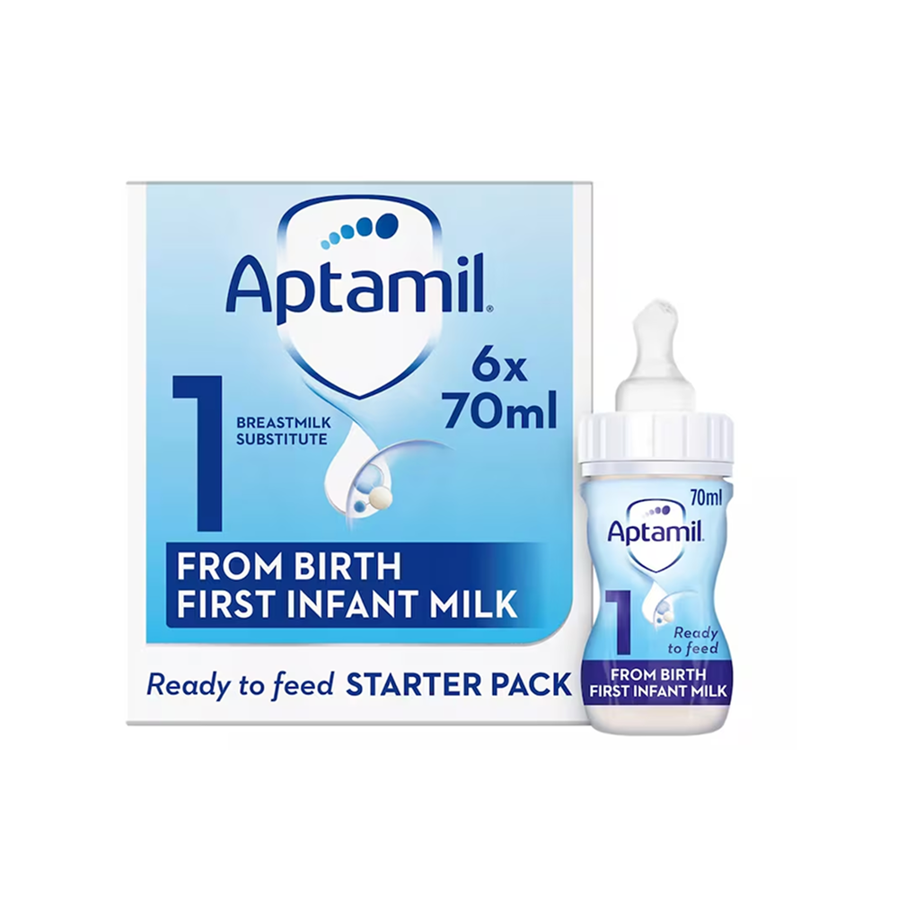 The Aptamil 1 First Infant Milk Starter Pack contains a set of ready-to-feed bottles designed for newborn babies from birth. Developed to provide complete nutrition, this formula is inspired by 40 years of breastmilk research. It includes DHA (Omega-3) and a blend of vitamins and minerals to support normal growth, brain development, and a healthy immune system.