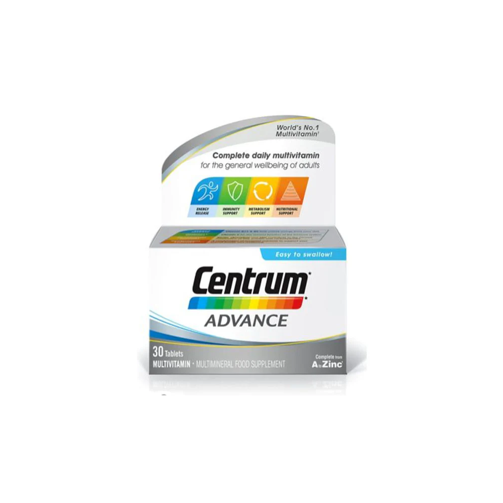Centrum Advance 30 Tablets support daily wellbeing with essential vitamins and minerals for immunity, energy, and metabolism.