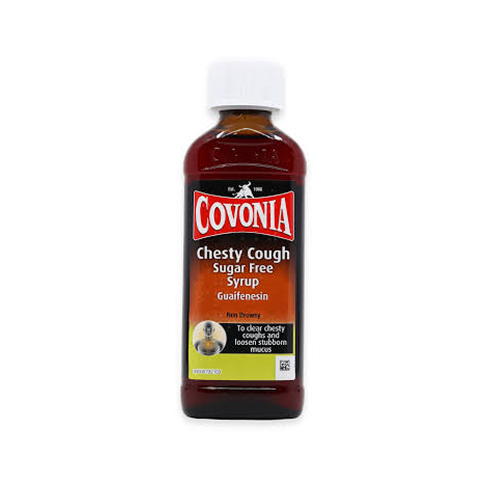 Covonia Sugar-Free Chesty Cough Syrup 150ml provides effective relief for deep chesty coughs without added sugar. Containing guaifenesin, it works as an expectorant to thin and loosen mucus, making coughing more productive. Non-drowsy and suitable for adults and older children needing daytime relief.
