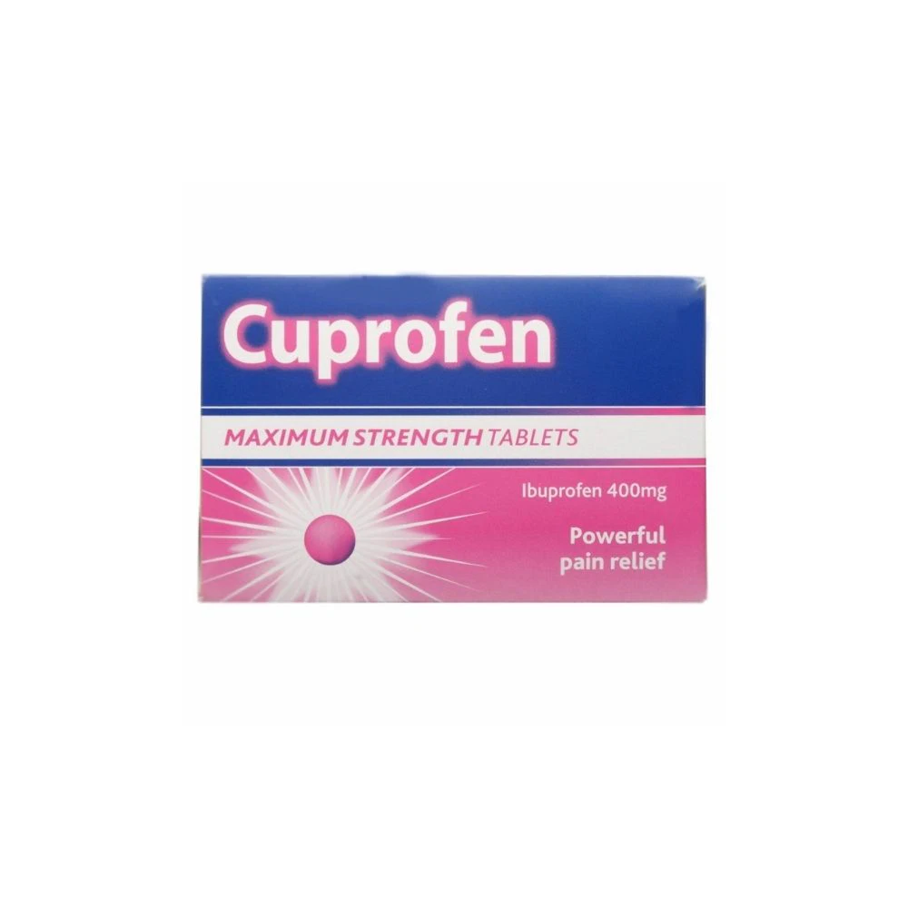 Cuprofen Maximum Strength 400mg Tablets deliver powerful relief from pain, inflammation, and fever. Each tablet contains 400mg of ibuprofen, an effective NSAID used to treat headaches, muscle pain, period pain, backaches, and arthritis. Fast-acting and long-lasting, this 24-tablet pack is ideal for managing moderate to severe pain. Always follow dosage instructions and consult a doctor if needed.