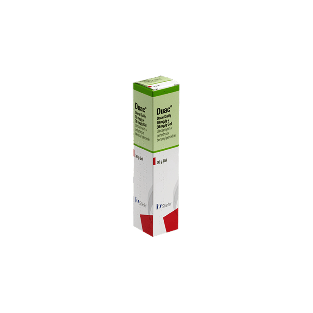 Duac Gel 3% is a prescription-strength acne treatment that combines clindamycin (1%), an antibiotic, and benzoyl peroxide (3%), an antibacterial and exfoliant. This powerful formula works to reduce inflammation, unclog pores, and target the root cause of acne.