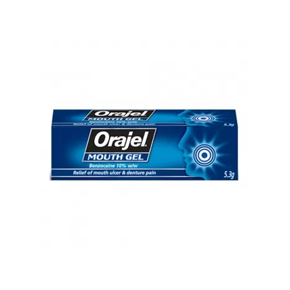 Orajel Mouth Gel – 5.3g provides fast relief from mouth ulcers, sore gums, and denture irritation.
