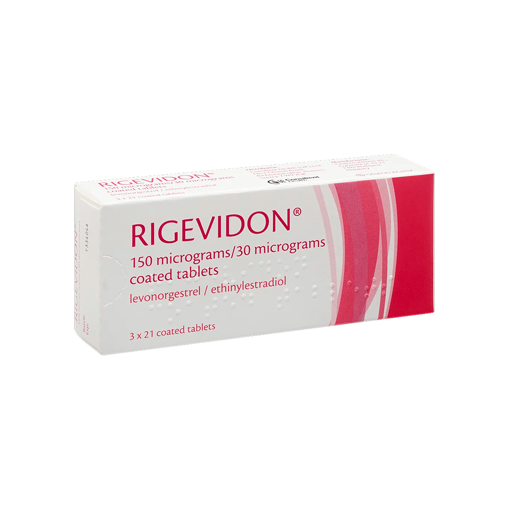 Rigevidon contains ethinylestradiol (30mcg) and levonorgestrel (150mcg), two hormones that work together to prevent ovulation, thicken cervical mucus, and alter the womb lining, making it a reliable method of birth control.