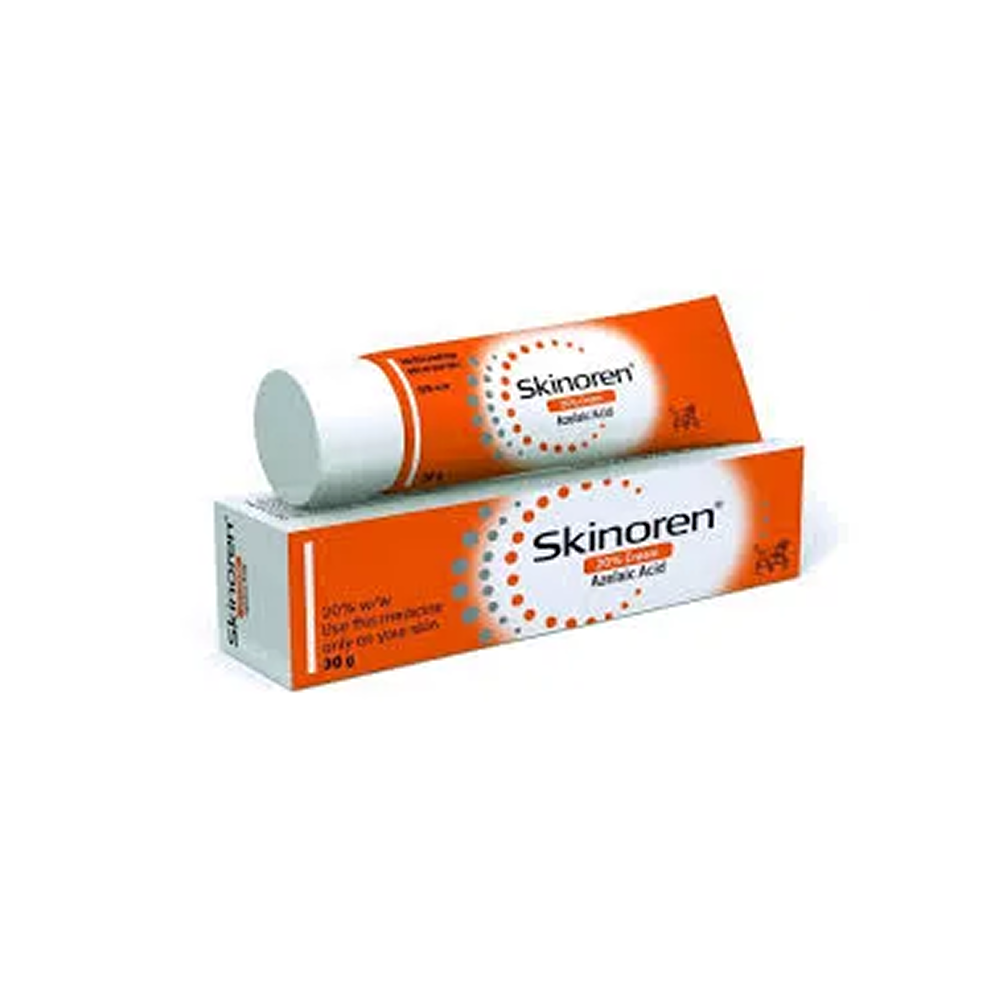 Skinoren 20% Cream contains Azelaic Acid, a dermatologically-approved ingredient known for treating acne and rosacea. It works by killing acne-causing bacteria, reducing inflammation, and gently exfoliating the skin to prevent clogged pores.