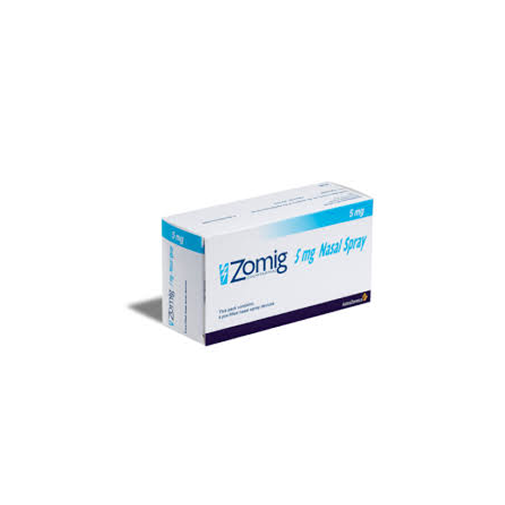 Zomig Nasal Spray contains zolmitriptan 5mg, a fast-acting treatment for the acute relief of migraine attacks, with or without aura. It belongs to the triptan class of medicines that work by narrowing blood vessels in the brain and reducing inflammation that triggers migraine symptoms.